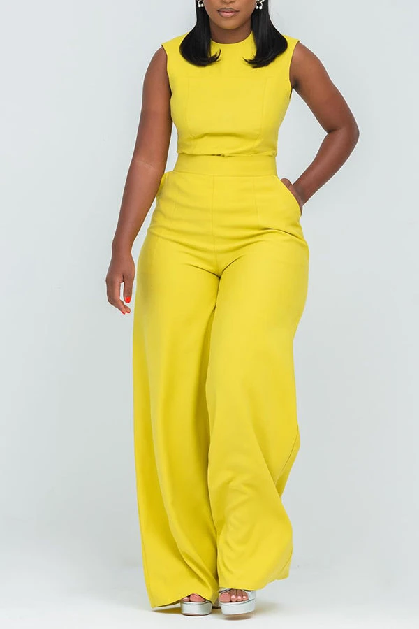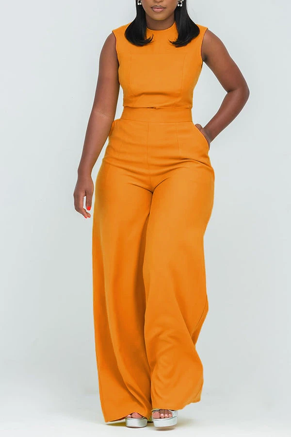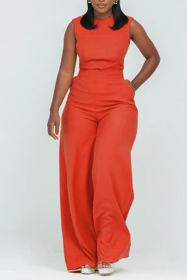 Embrace the spring and summer with this Stylish Round Neck Slant Pocket Jumpsuit. Stay cool and stylish with the straight wide legs. Perfect for a day out or a casual summer gathering. Two practical pockets can hold your everyday essentials, freeing your hands and eliminating the need for a purse when you’re out and about.