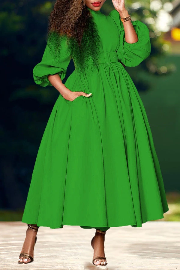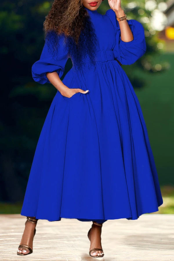 The Gorgeous Lantern Sleeve A-line Dress is crafted from soft and comfortable polyester fabric. With its calf-length silhouette, ruffle sleeves, and elegant funnel neckline, this dress exudes sophistication and style. Perfect for any occasion, its A-line design ensures a flattering fit for every modern woman.