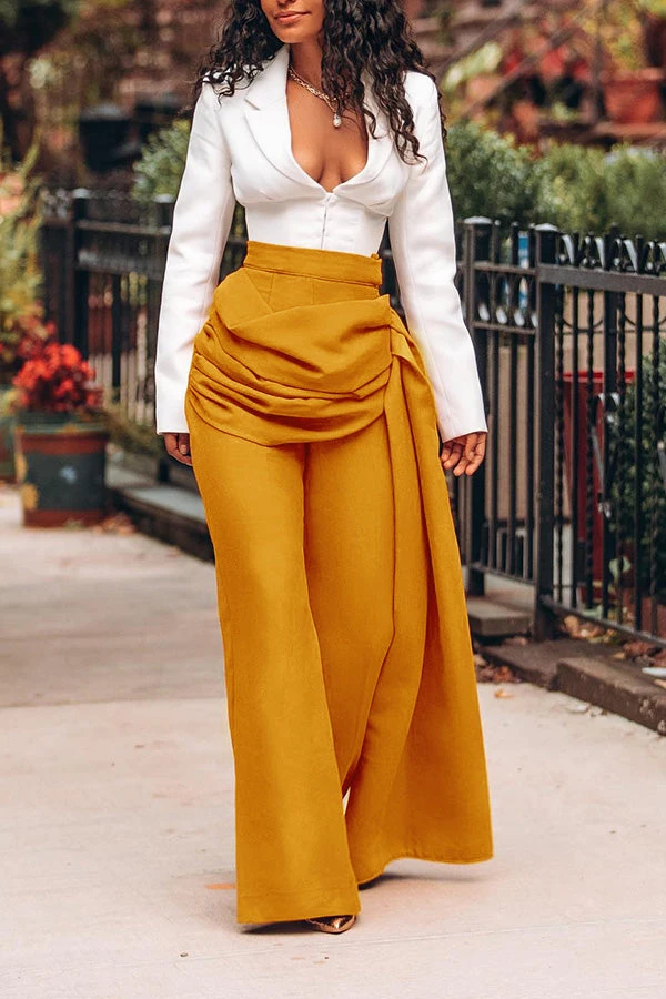 Stay on trend this season in our new stylish, loose fit pants. We especially love the solid color fabric and think this piece will be a new favorite in your closet!